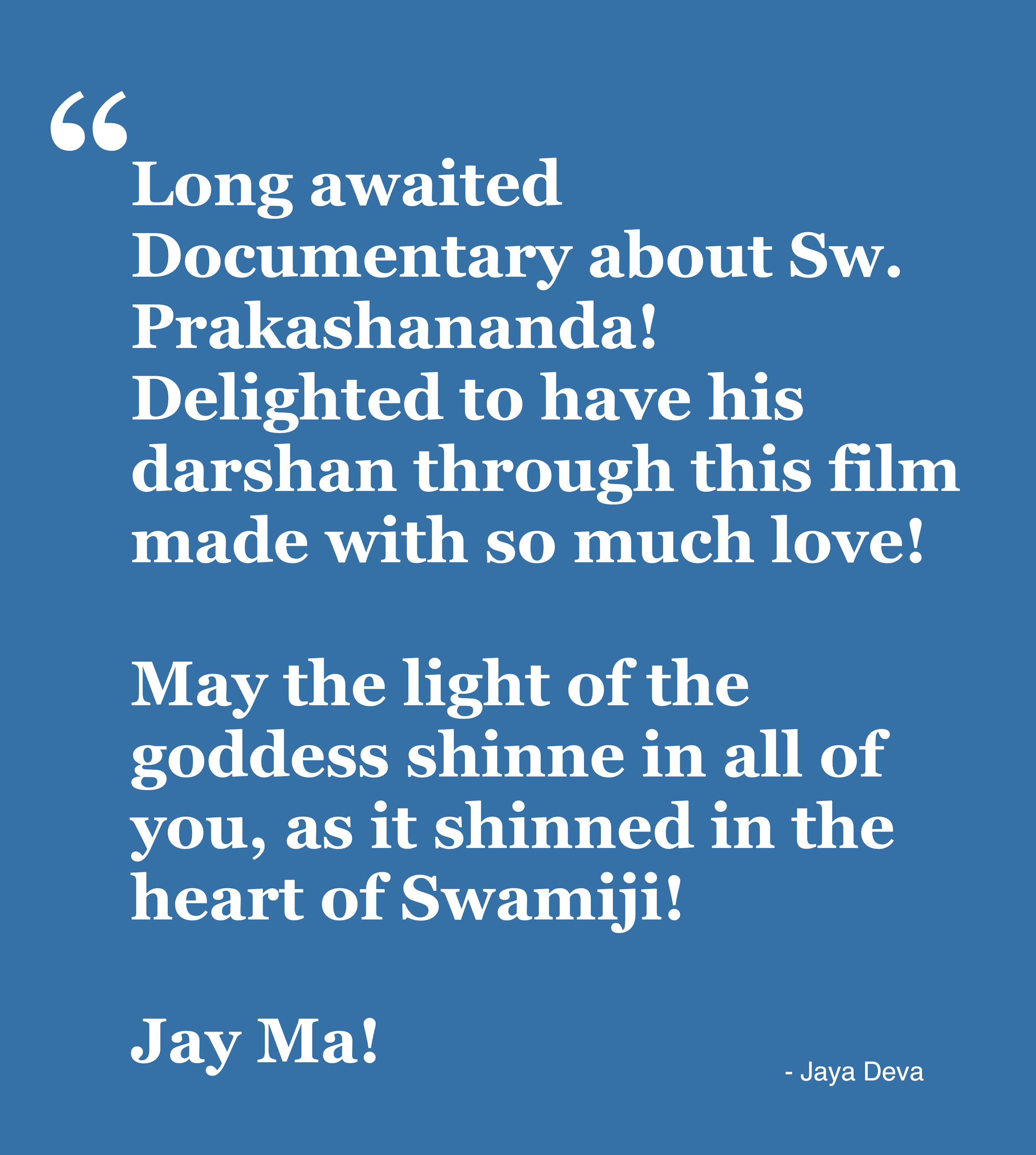 This documentary, The Light of Love, explores Prakashananda’s wisdom stories and parables. His message is one of love. Indeed, he was the embodiment of what he taught. Prakashananda described himself as "an agaram bagaram baba" meaning hotchpotch baba.